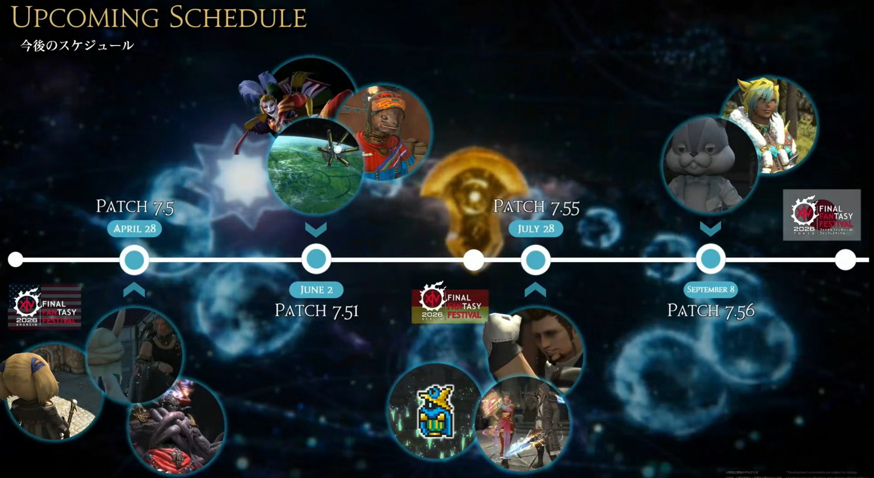 メインクエストは「神なき世界編(Godless Realms Saga)」の第二章として展開。吉田P/Dは「北米ファンフェスは”メインクエスト Part.0″に相当する」と発言しており、次拡張への物語の導入は2026年4月28日のパッチ7.5メインクエストから開始される。