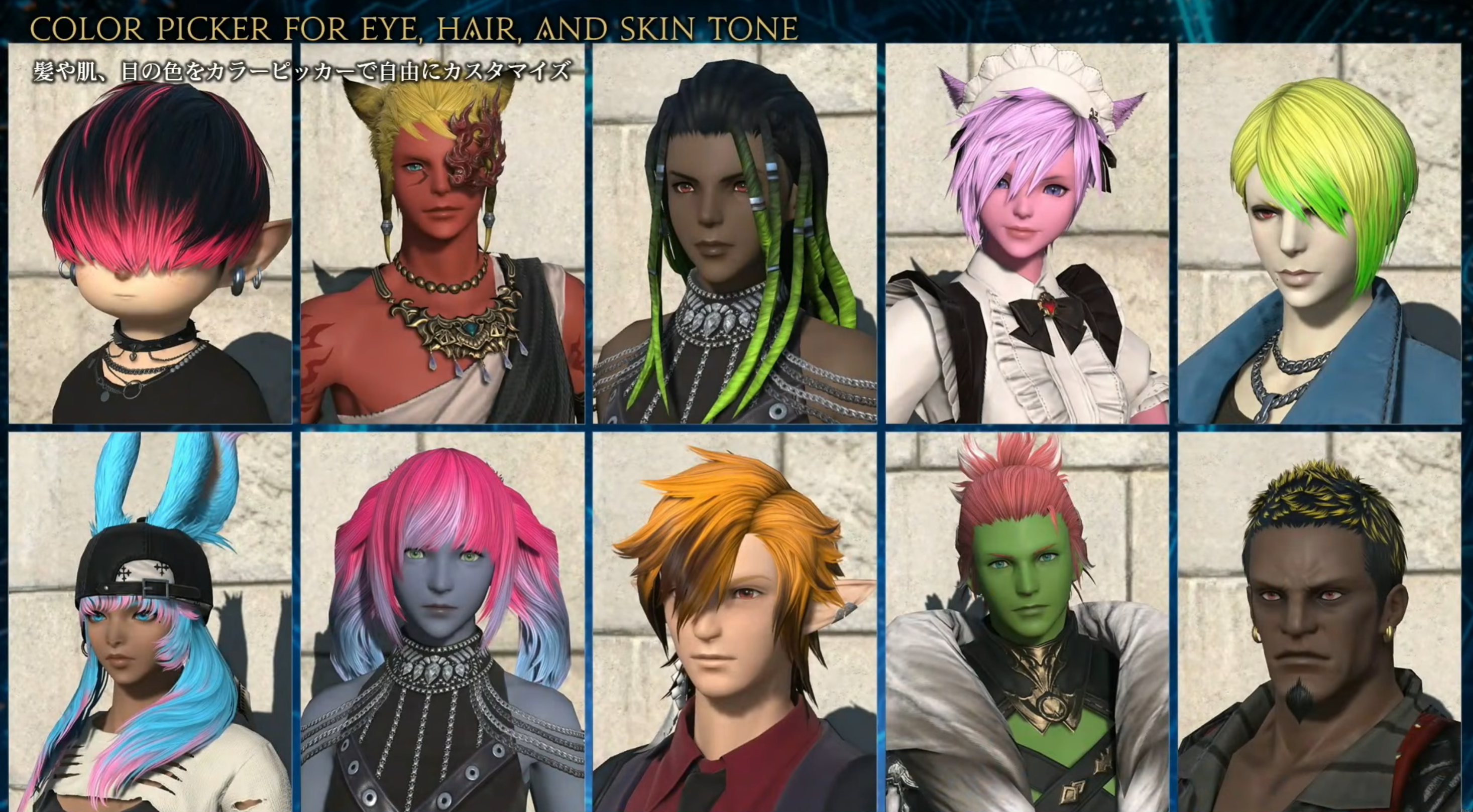 肌・目の色・髪はフルカラースペクトラムのカラーピッカーに移行。これまでのパレット選択式から自由な色指定が可能になる。