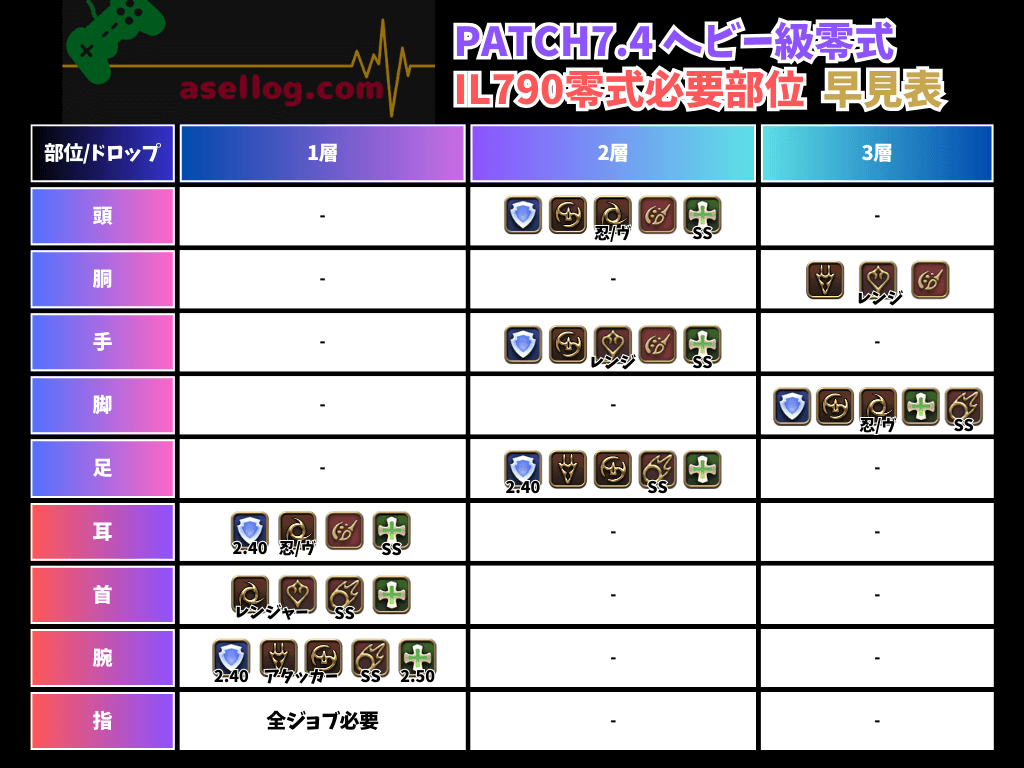 GCD2.50~2.41までの採用部位が変わらず、ジョブチェンジしやすくなっている。GCD2.32以上になるとSS部位を優先取得するため、黒魔導士以外へ着替えることが難しい