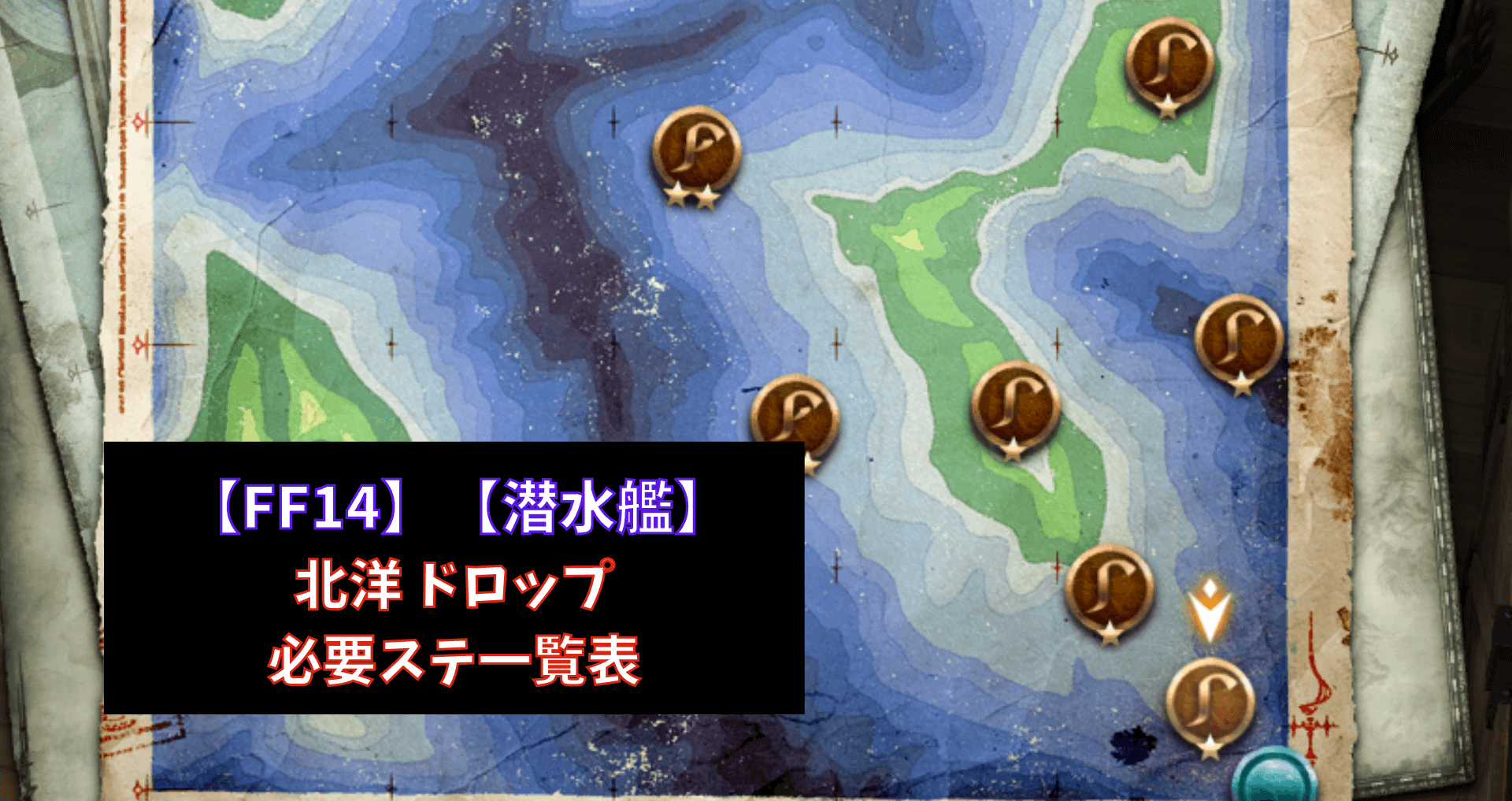 サブマリンボイジャー7つ目の海域「北洋」の各航路ドロップと、潜水艦の要求ステータスをまとめた一覧表。
