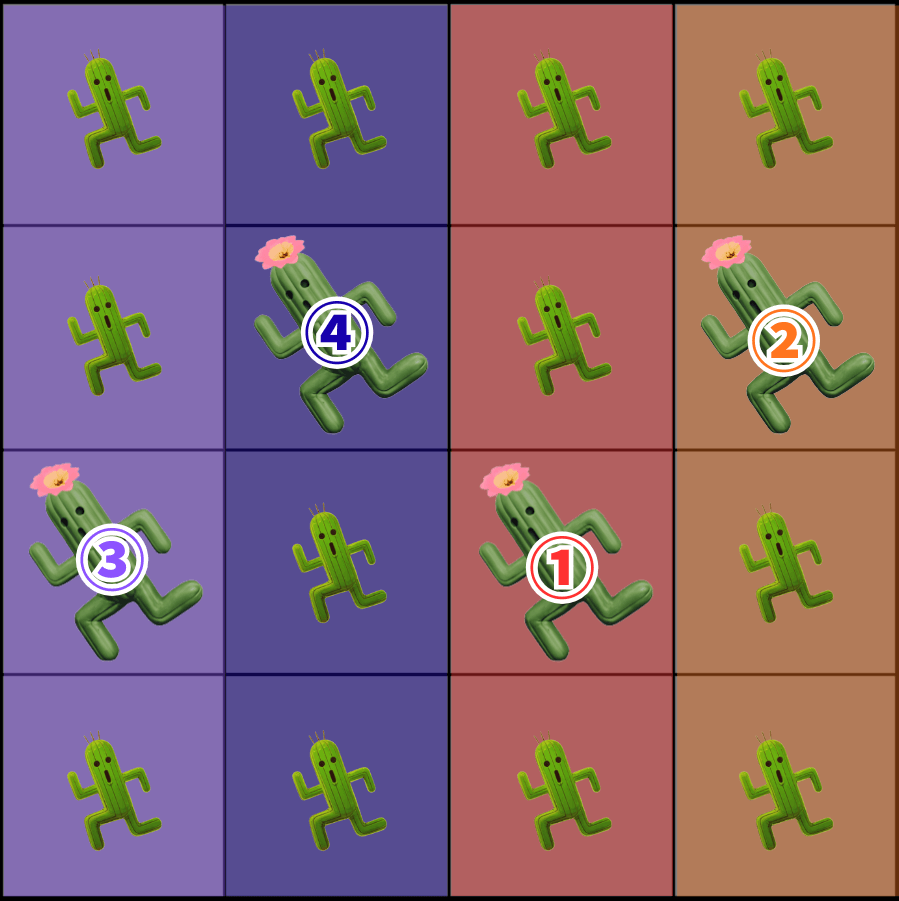 配列一例だが、各列大サボテンは1マス空けた配置もある。基本は一松並びで考えれば良い。