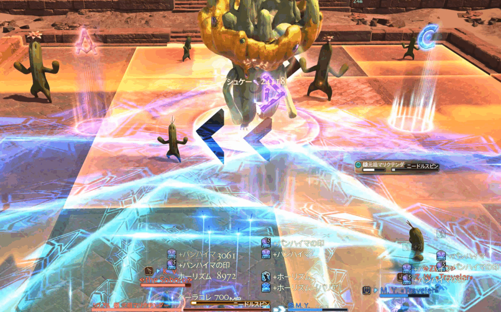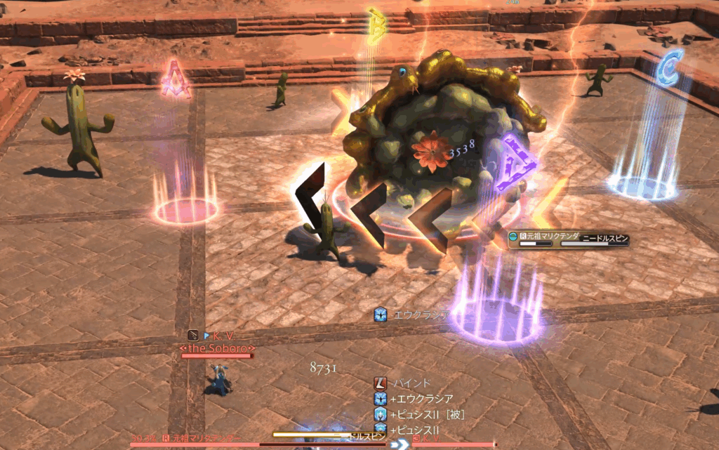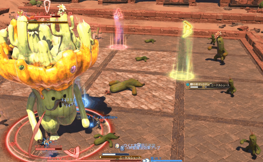 ④縦列の大小サボテンAoEが発動した直後、再度ニードルシュートが来るので要注意。