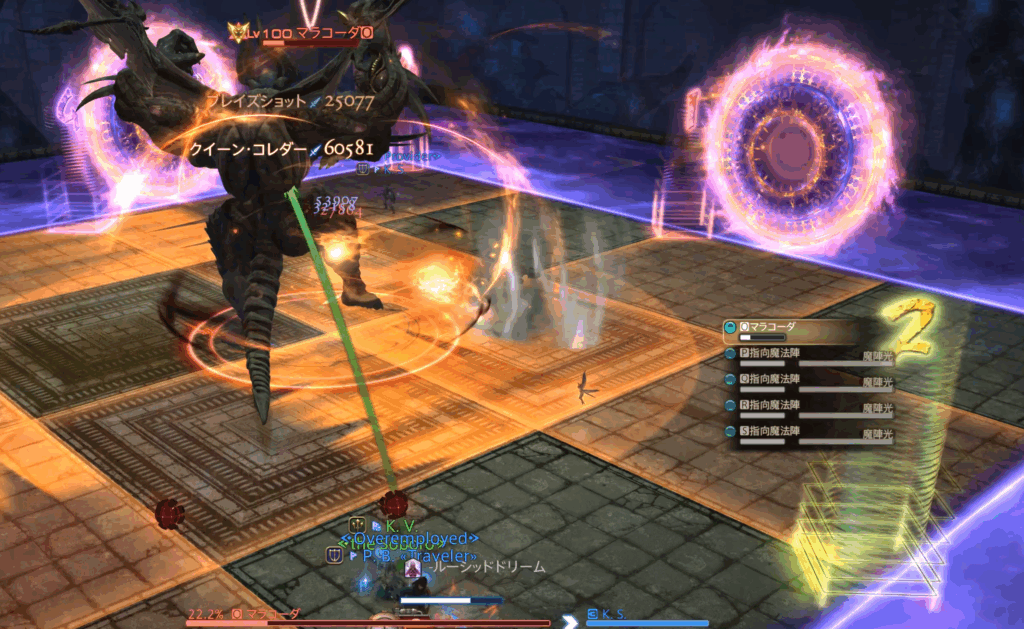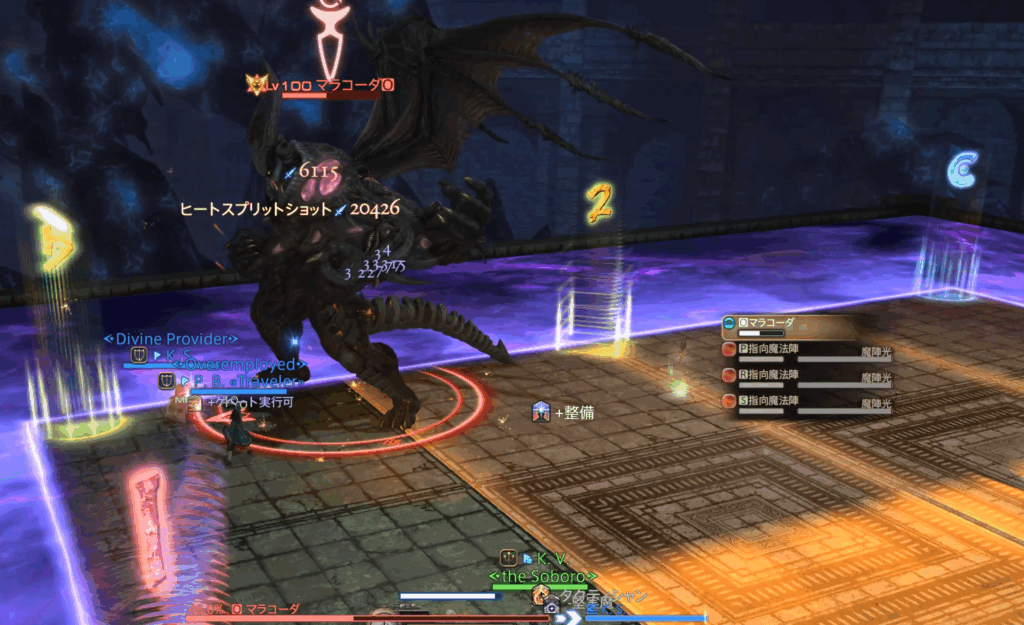 ノックバック先外周にランダム3列の「指向魔法陣」が設置されるため、安置1列へ駆け込む。