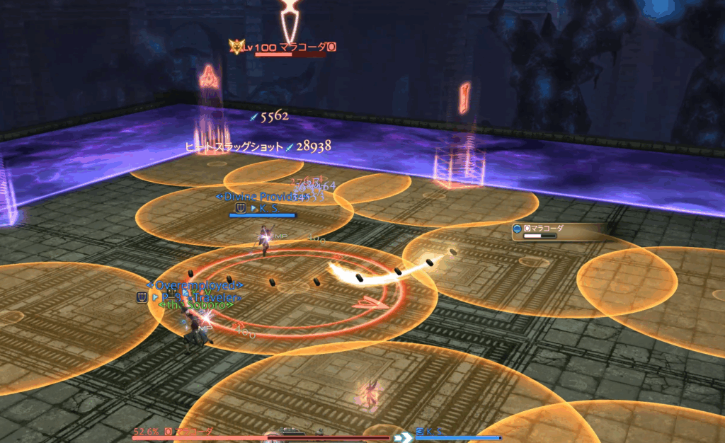 ヘイト1位に不可視の円範囲&前/後方扇範囲。 |