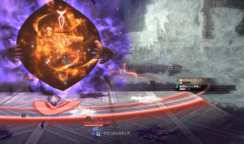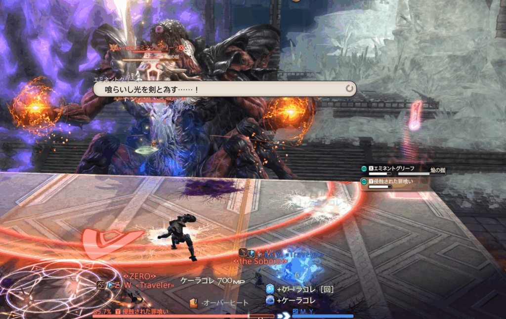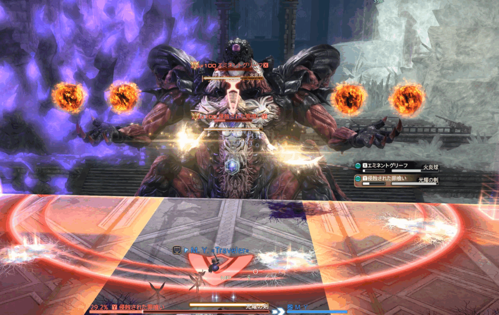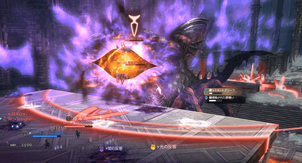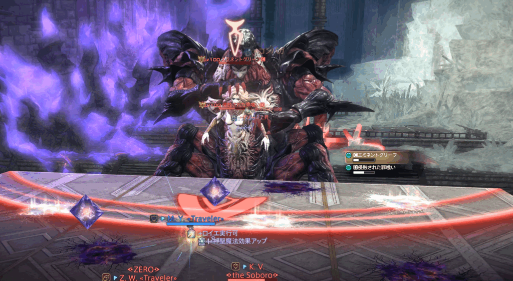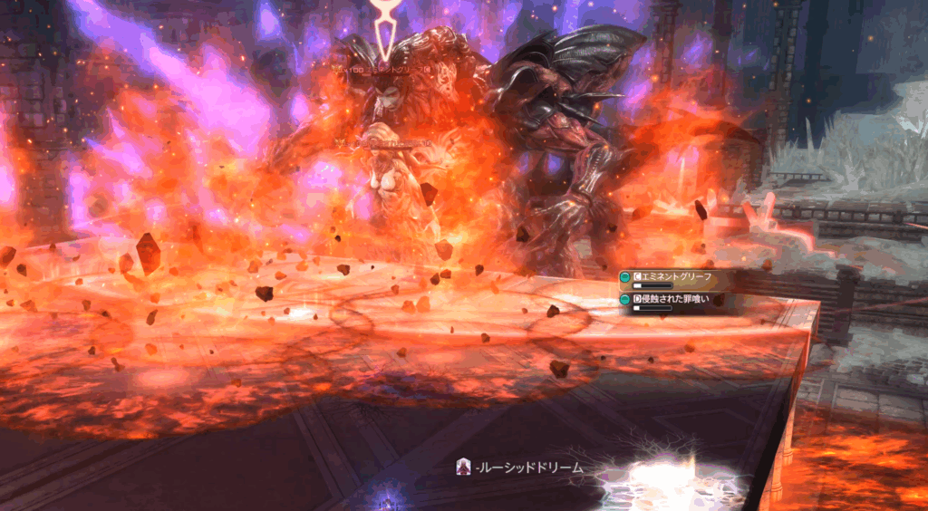 また、それぞれのHPが15%差以上になるとエミネントグリーフにHoT、浸食された罪喰いに与ダメージアップバフが付くペナルティ発生。
