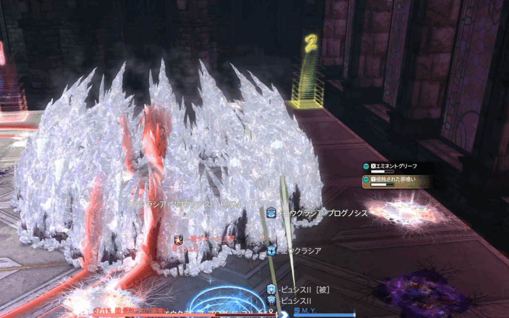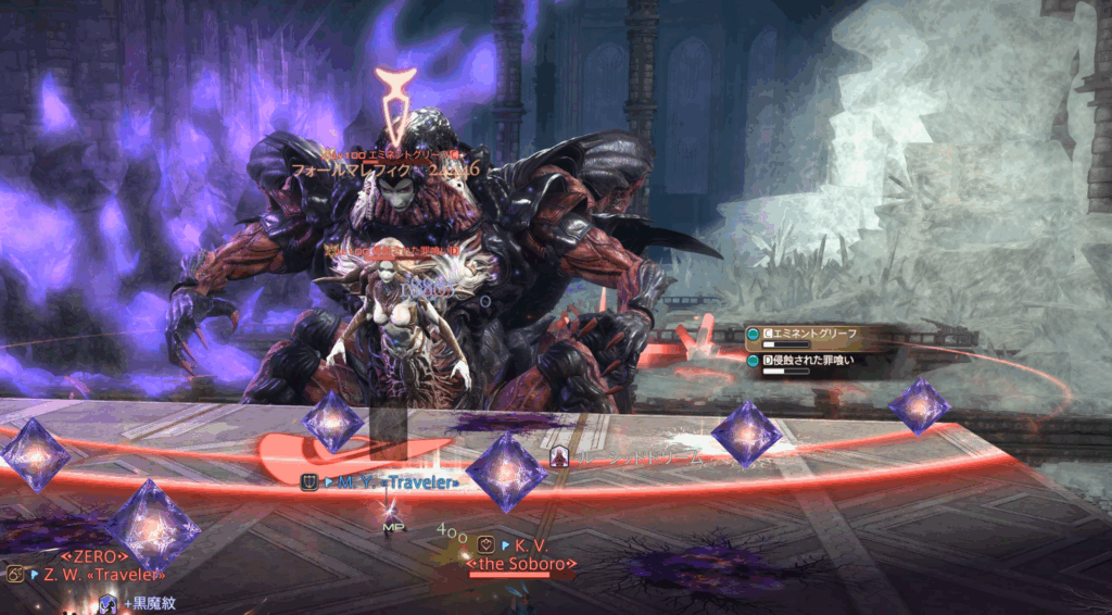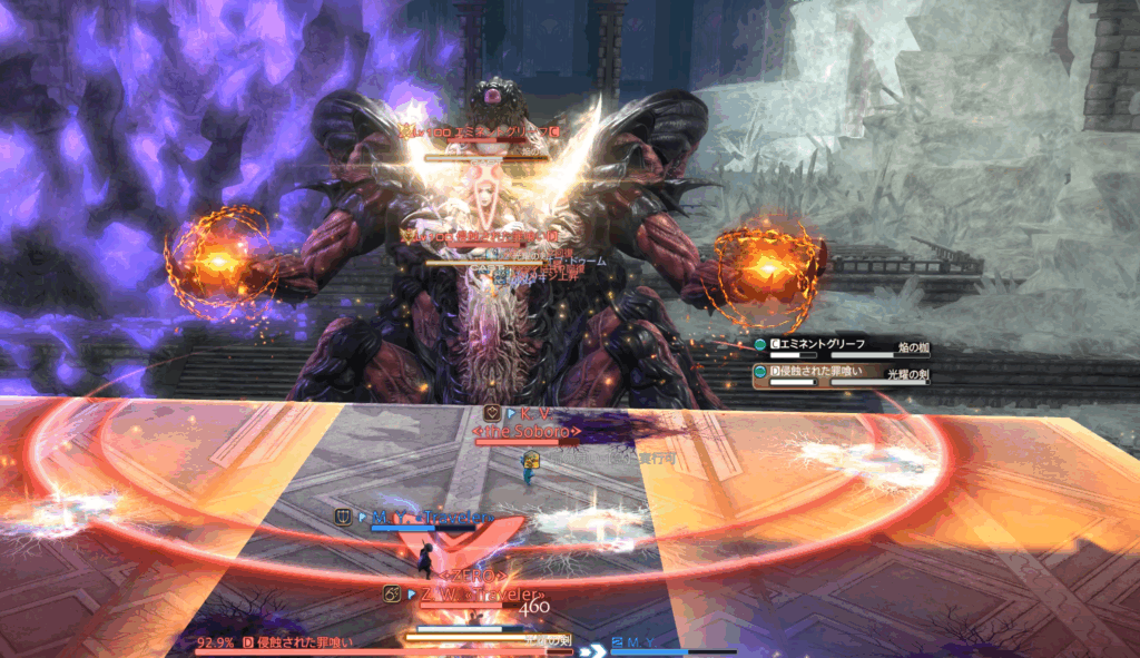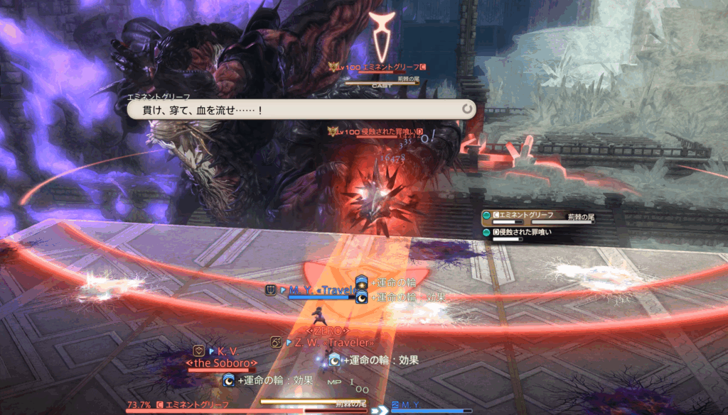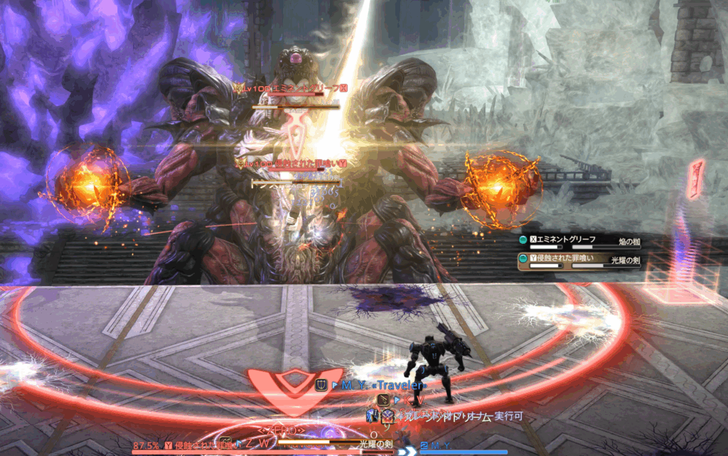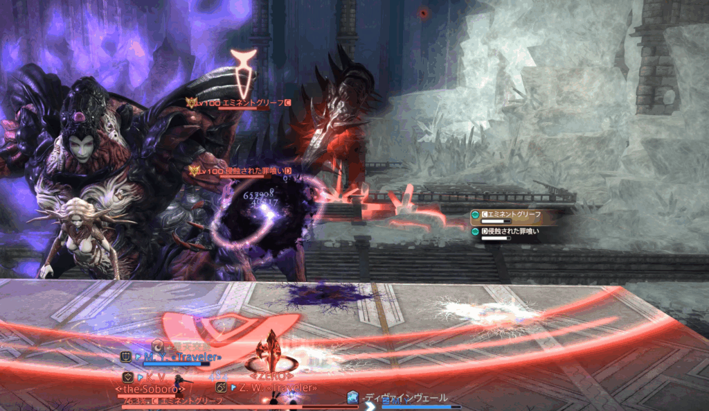 また、それぞれのHPが15%差以上になるとエミネントグリーフにHoT、浸食された罪喰いに与ダメージアップバフが付くペナルティ発生。